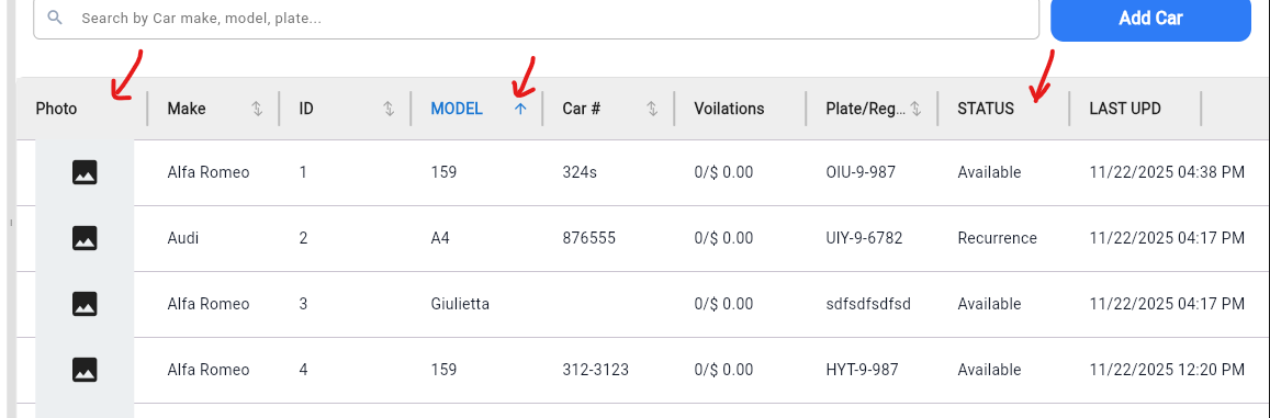 - Assending/decending columns