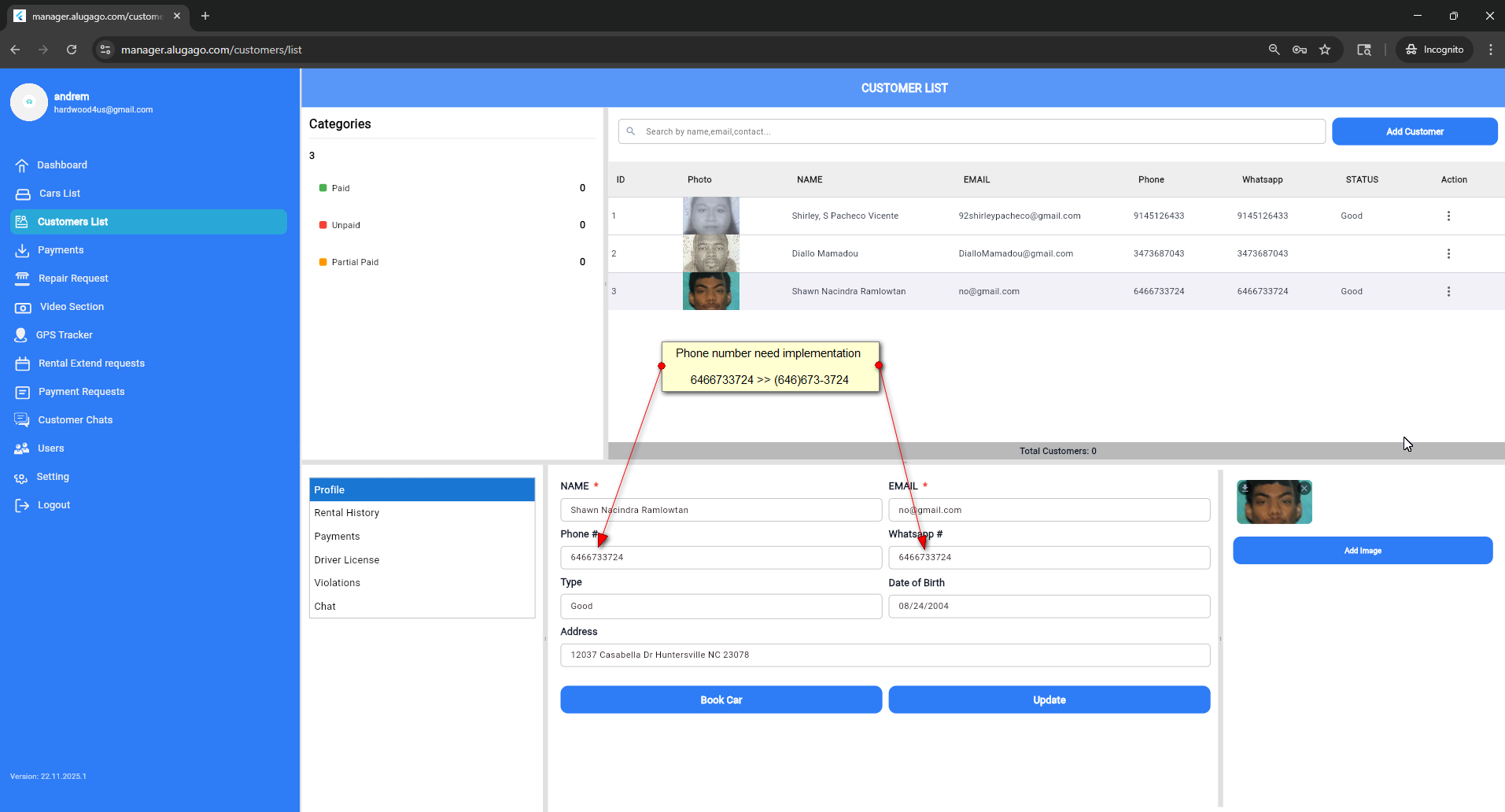 closedV 22/11/25 Phone Numbers need implementation