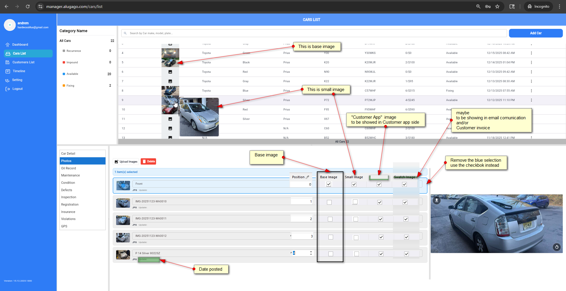 The checkboxes are present but non-functional; however, the two lines at the end are used for drag-and-drop reordering, and the updated index is being saved successfully to the database.